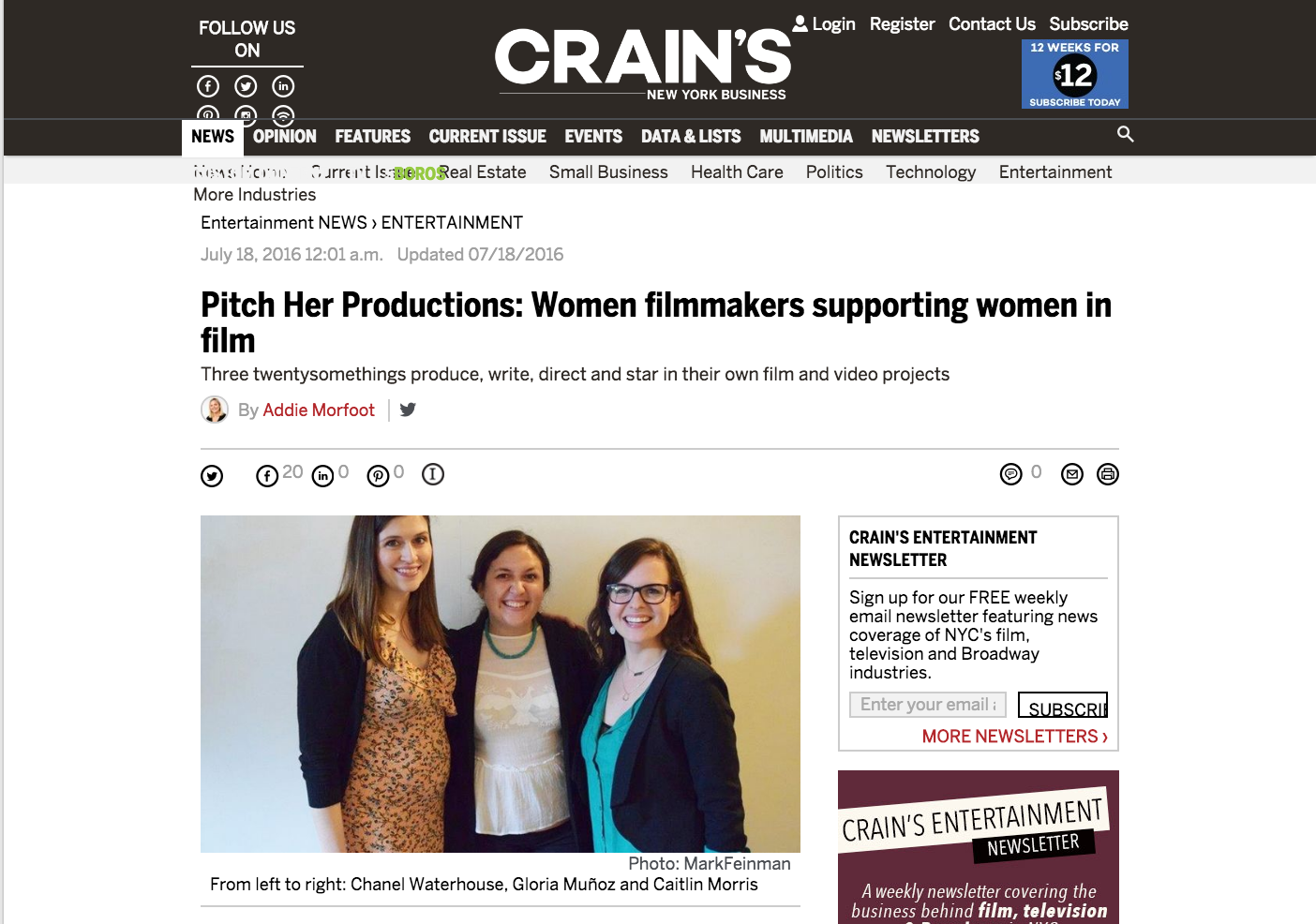 Pitch Her Productions, Executive Producers of Keep Me Posted, were featured in today's Crain's NY Business. Click the image above to read more about their mission to support women in film!